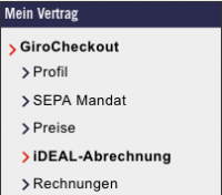 Wenn Sie iDEAL-Zahlungen entgegennehmen, haben Sie im GiroCockpit die Möglichkeit, die detaillierte Aufstellung zur iDEAL-Rechnung abzurufen. Sie finden diese Option in Ihrem GiroCockpit im Bereich „Mein Vertrag“ > GiroCheckout, in der linken Spalte Ihres Cockpits: