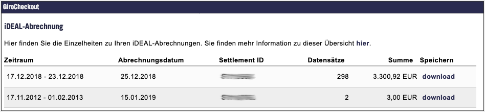 | SettlementId | string | Settlement-ID der Abrechnung (für alle Datensätze in der Datei gleich) |