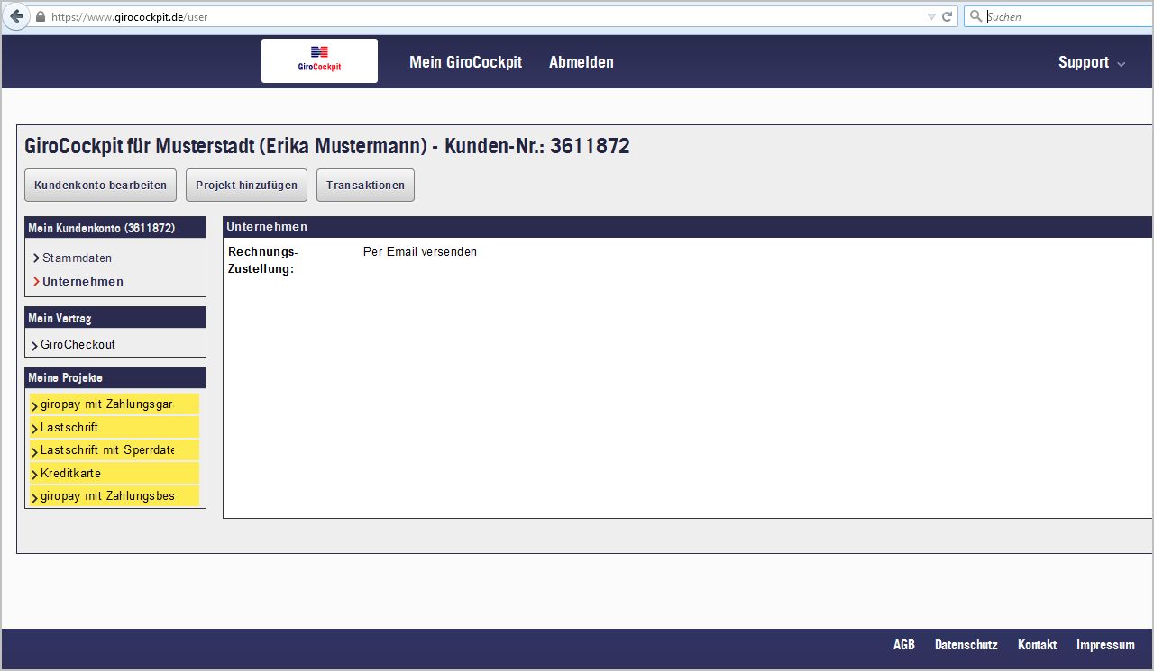 Unter der Kategorie „Mein Kundenkonto“ sind alle unternehmensbezogenen Daten zu Ihrem Unternehmen hinterlegt. Damit es für Sie als Kunde übersichtlich bleibt, haben wir die Kategorie in zwei Unterkategorien unterteilt.