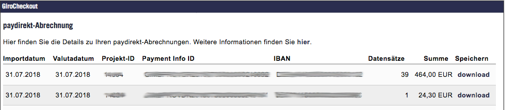paydirekt-Abrechnung